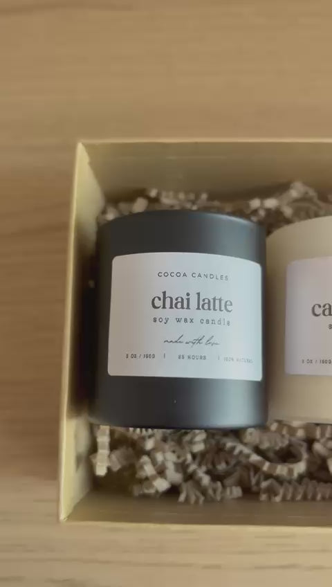 Déjate envolver por los aromas más reconfortantes del otoño con este pack de tres velas artesanales: Chai Latte, Carrot Cake y Pumpkin Spice.